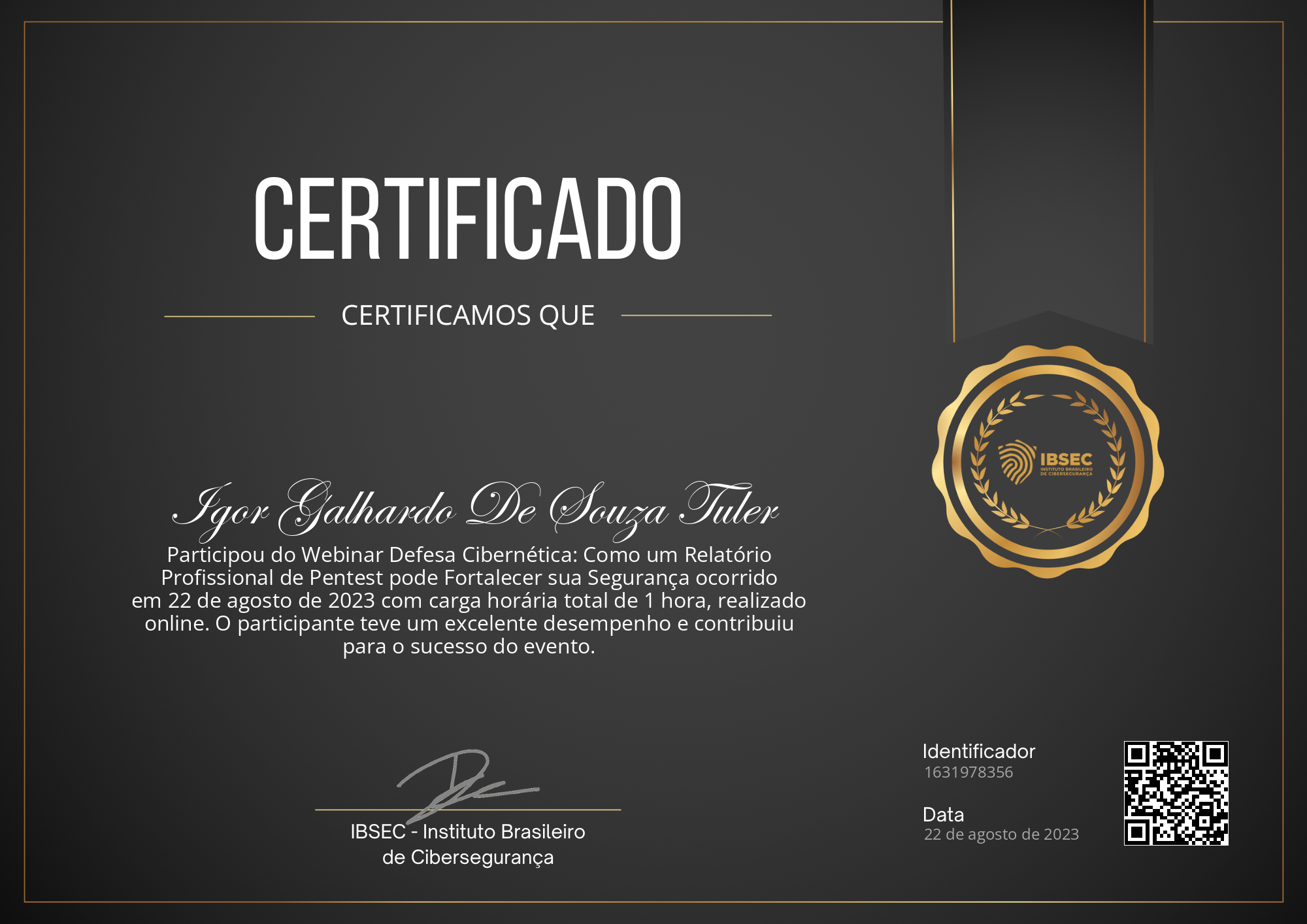 Certificado válido. Igor Galhardo De Souza Tuler concluiu a trilha de aprendizagem Como um Relatório Profissional de Pentest pode Fortalecer sua Segurança.