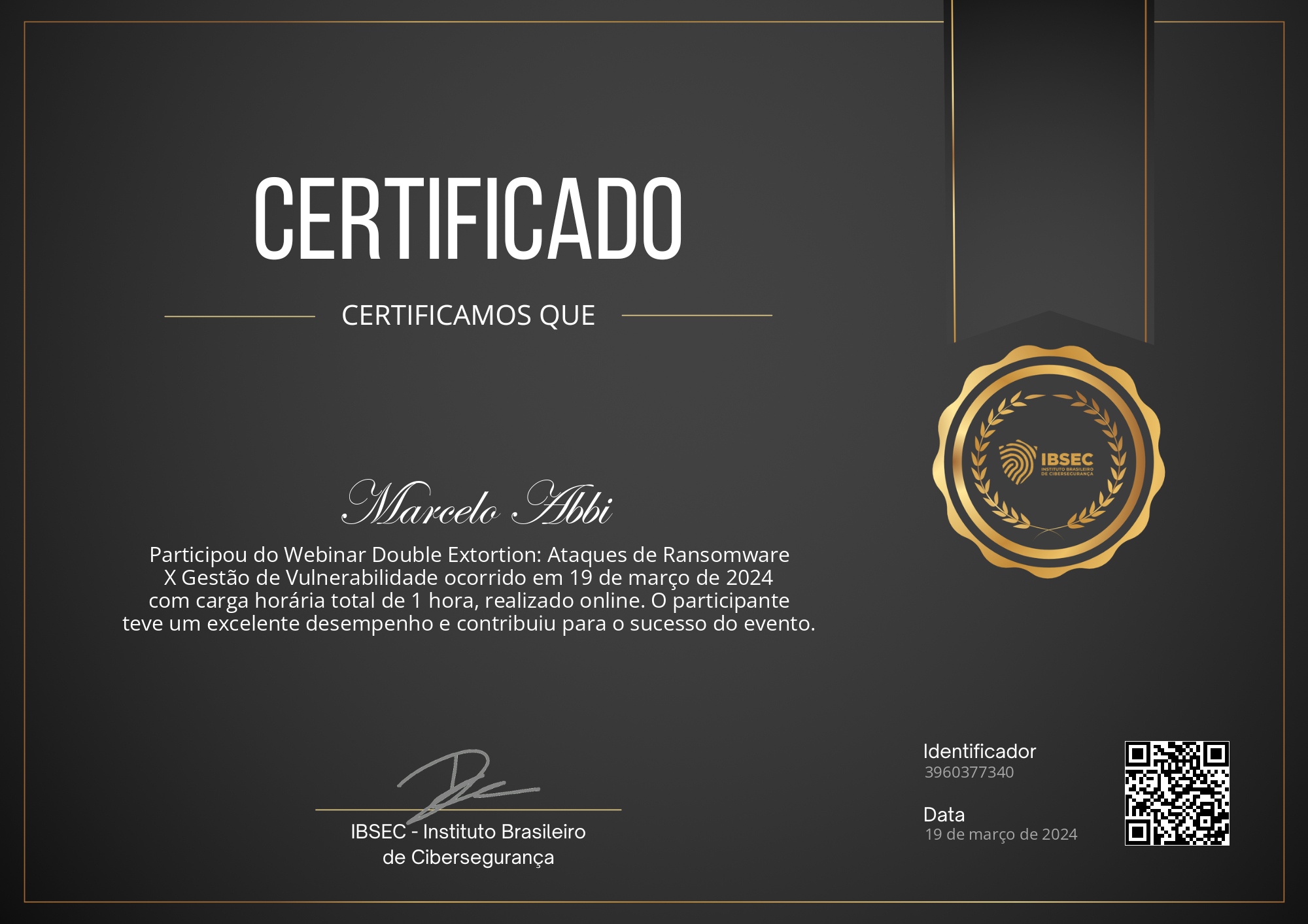 Certificado válido. Marcelo Abbi concluiu a trilha de aprendizagem Double Extortion: Ataques de Ransomware X Gestão de Vulnerabilidade.